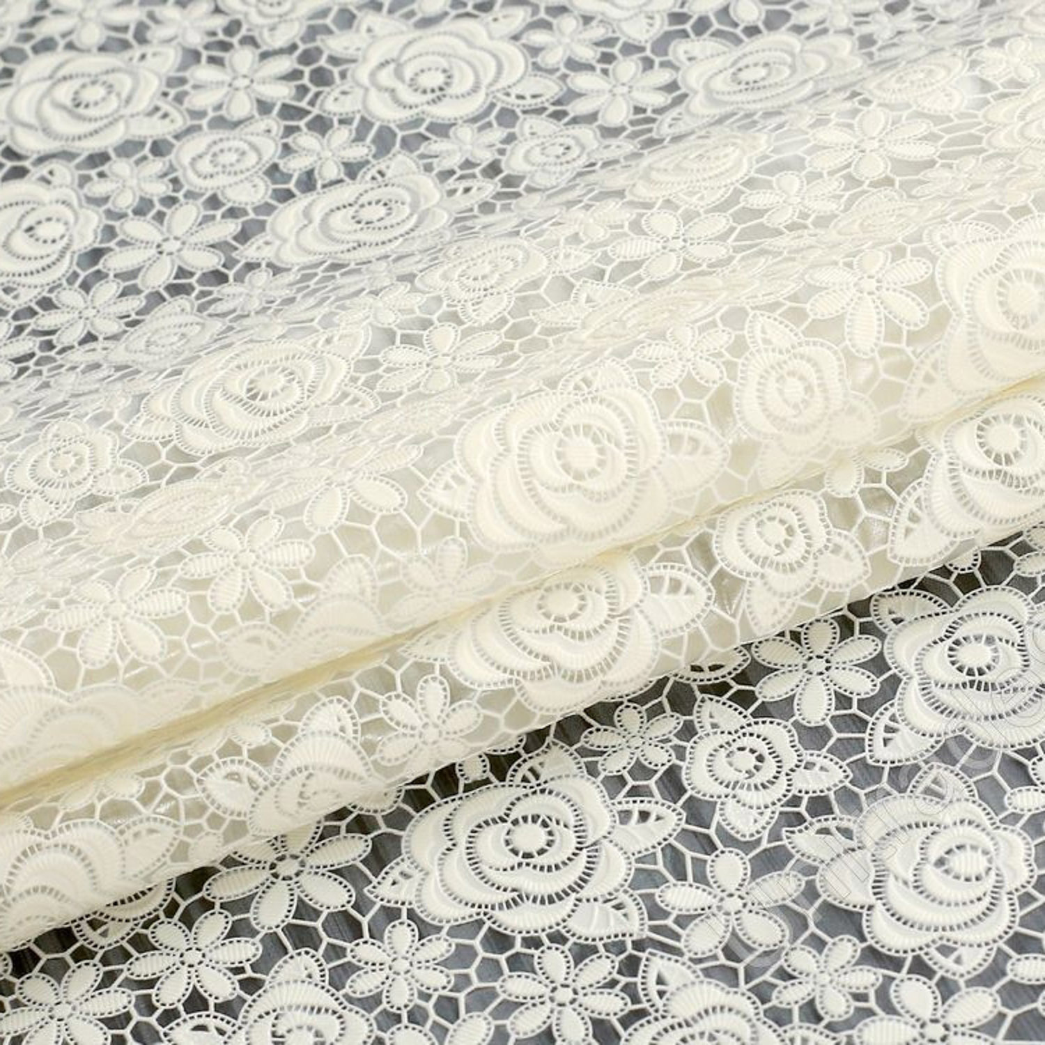 Клеёнка без основы ажурная "Цветочки" бежевая шир. 1,37м GW-21120 "Great Way" *20