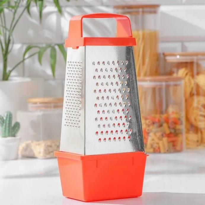 Терка металл. нерж. 4-х стор. пластм.ручка, пирамид, с Контейн. 270х85х110мм К01.002.03"Кварц"*1/25