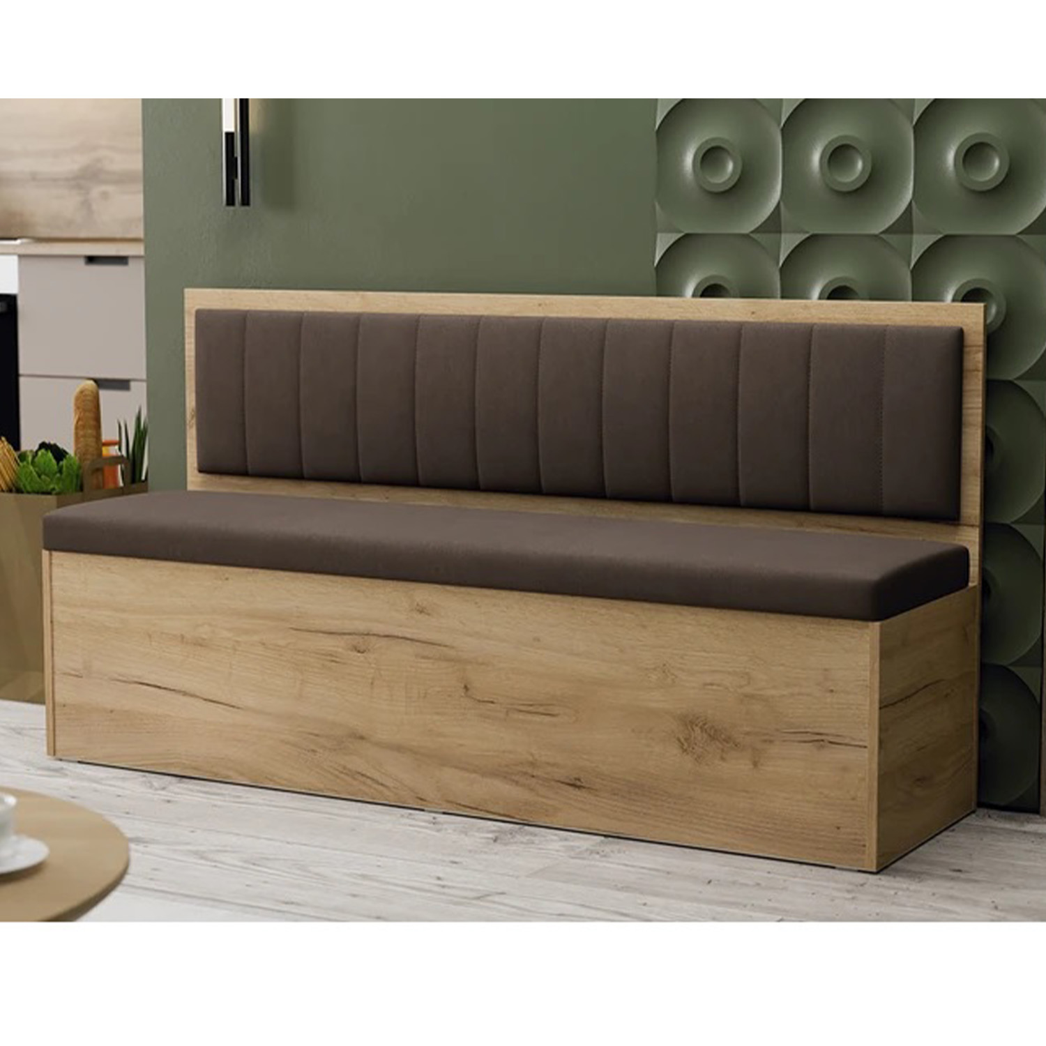 Скамья прямая Берген Дуб Крафт золотой/Велюр Коричневый*1