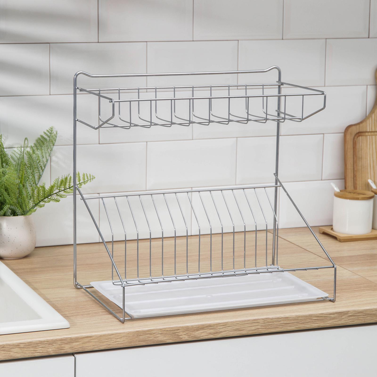 Сушилка для посуды настольная металл. 2-х ярусн. 380х240х380мм хромир., с Поддоном. арт.6827772 *1/6