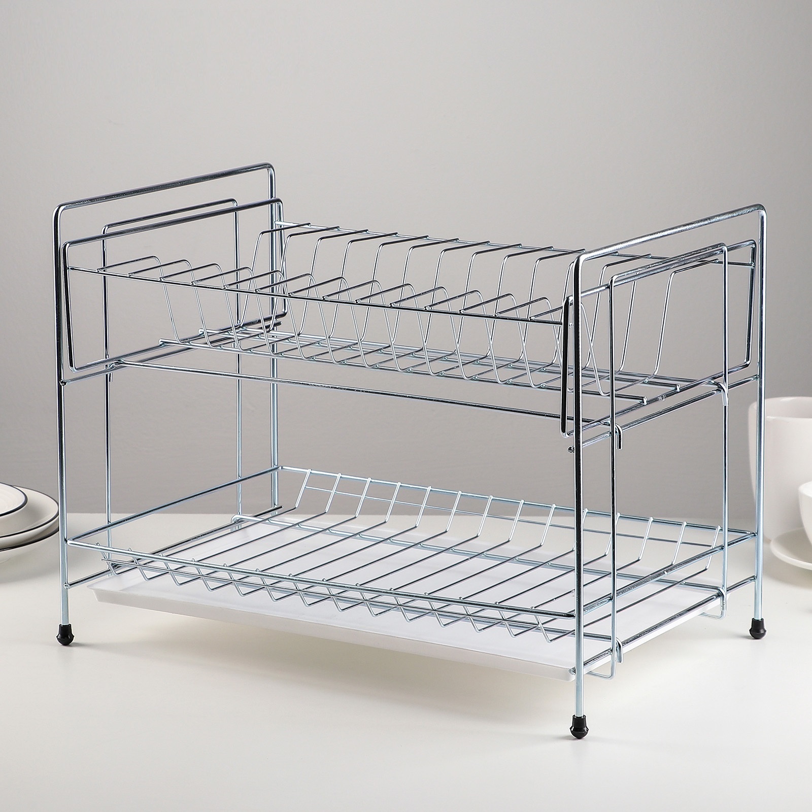 яяяСушилка для посуды настольная металл. 2-х ярусн. 390х255х300мм хромир., с Поддоном арт.4786076 *1