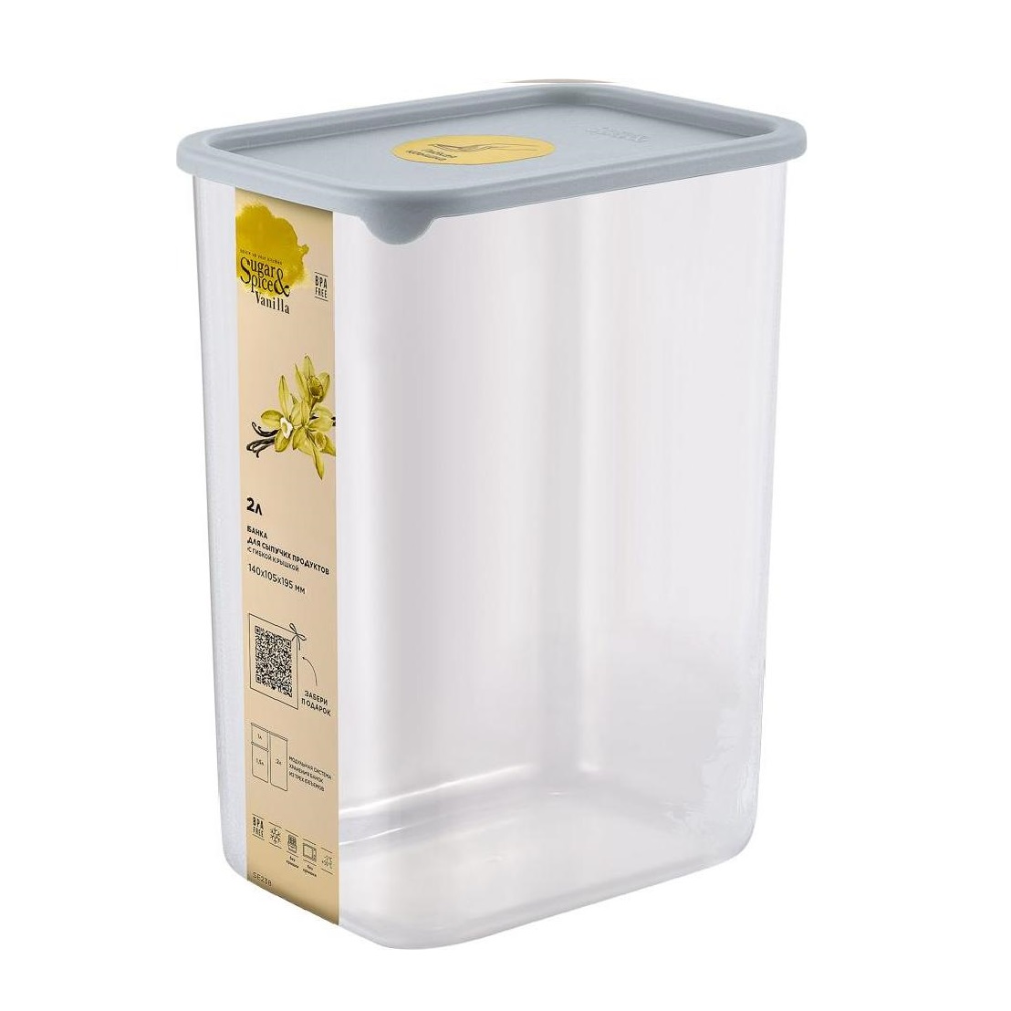 Банка для продуктов пластм. "Vanilla" 2л 140x105x195мм Трюфель SE168310025 "Sugar&Spice" *1/8