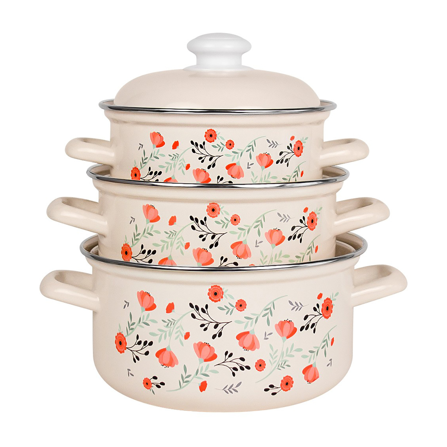 Набор кастрюль эмалированных: 1,5л+2,0л+3,0л рис."Blossom" С-124АП2/4Жм "Лысьвенские ЭМАЛИ" *1