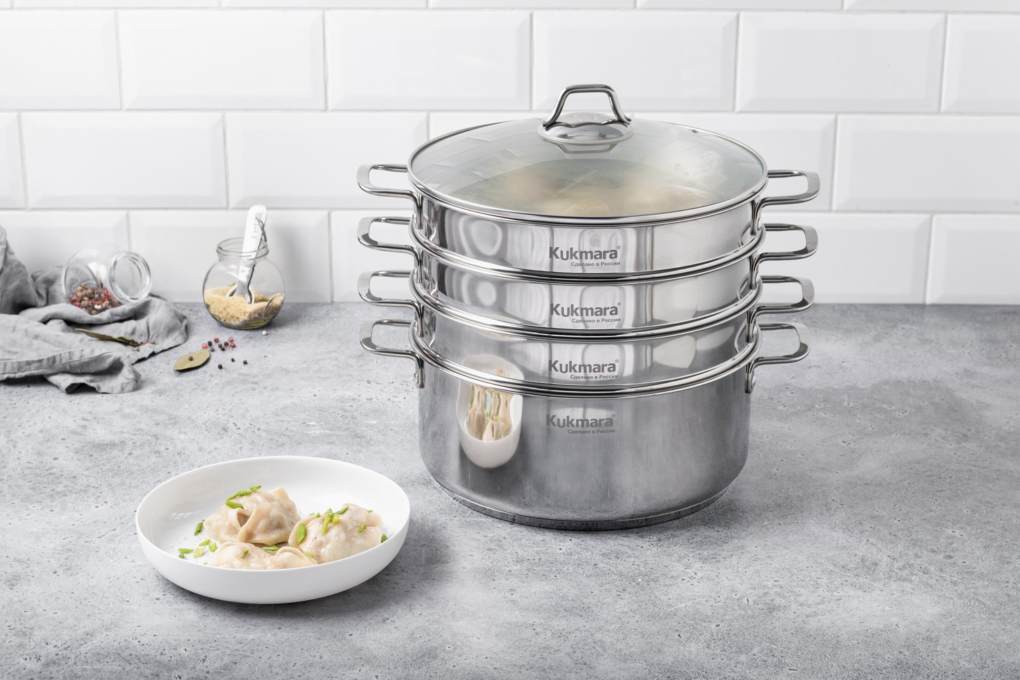 Мантоварка-пароварка нерж. 3-х ярусная, 6,0л, d260мм,выс.290мм д/Индукции STM602603G "Kukmara" *1/2