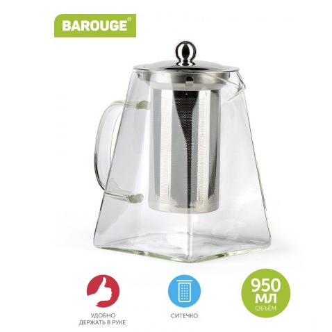яяяЧайник заварочный жаропрочное стекло 950мл фильтр-сито (BF-508) "Barouge" *1/36
