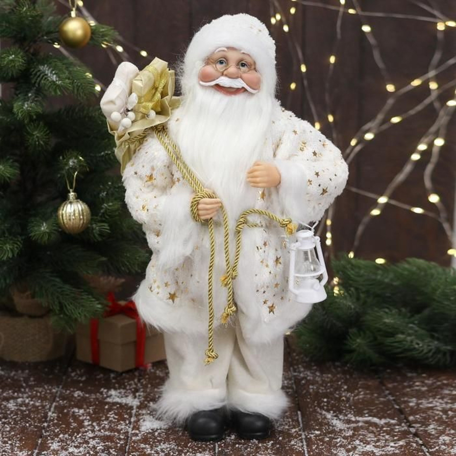 Дед Мороз "В белой звёздной шубке, с фонарём" 45 см 4316760