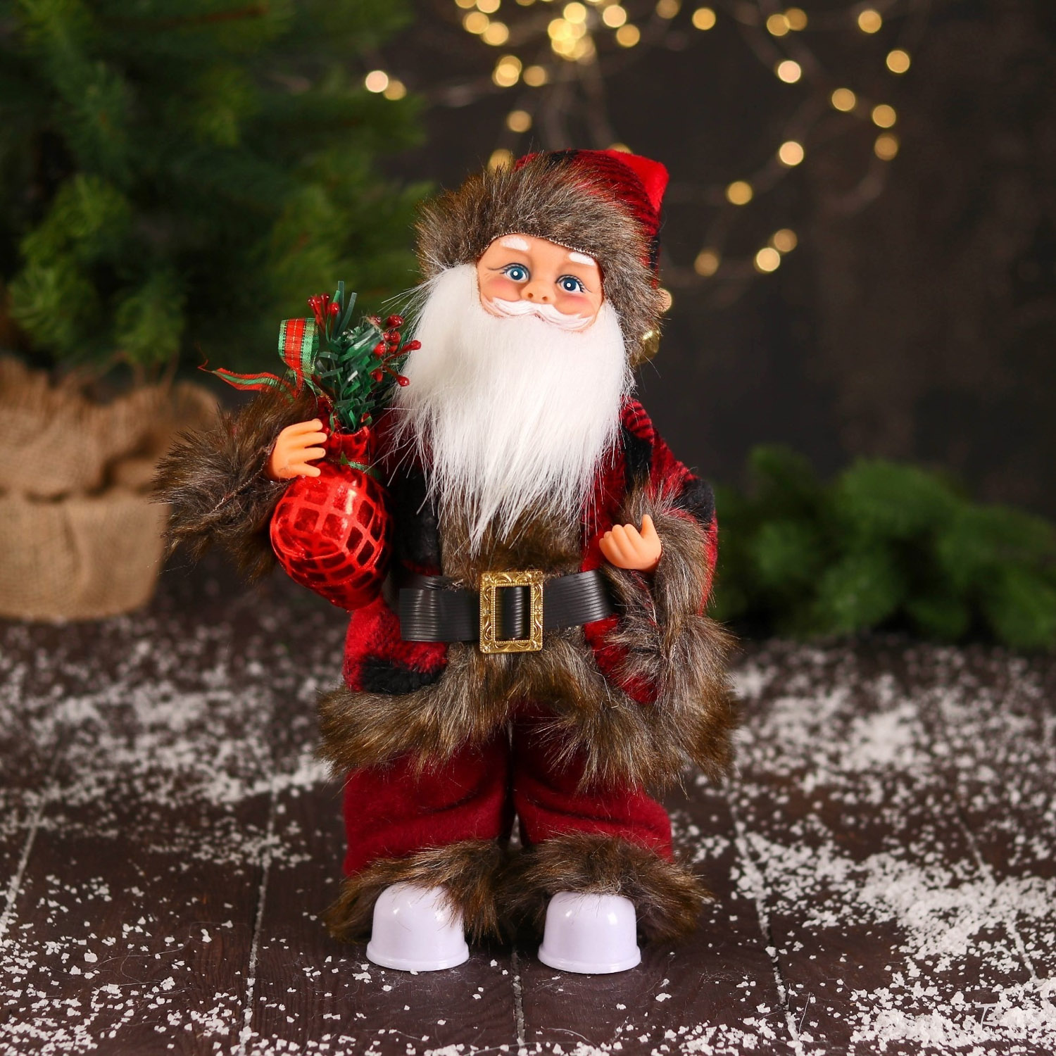Дед Мороз "В меховом красном костюмчике, с мешком" двигается, 11х30 см 6938376
