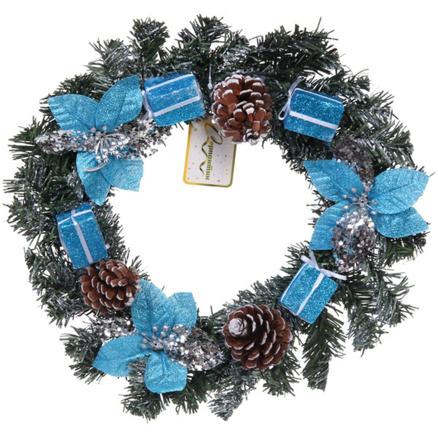 Венок хвойный "Снежное синяие" d-30 см