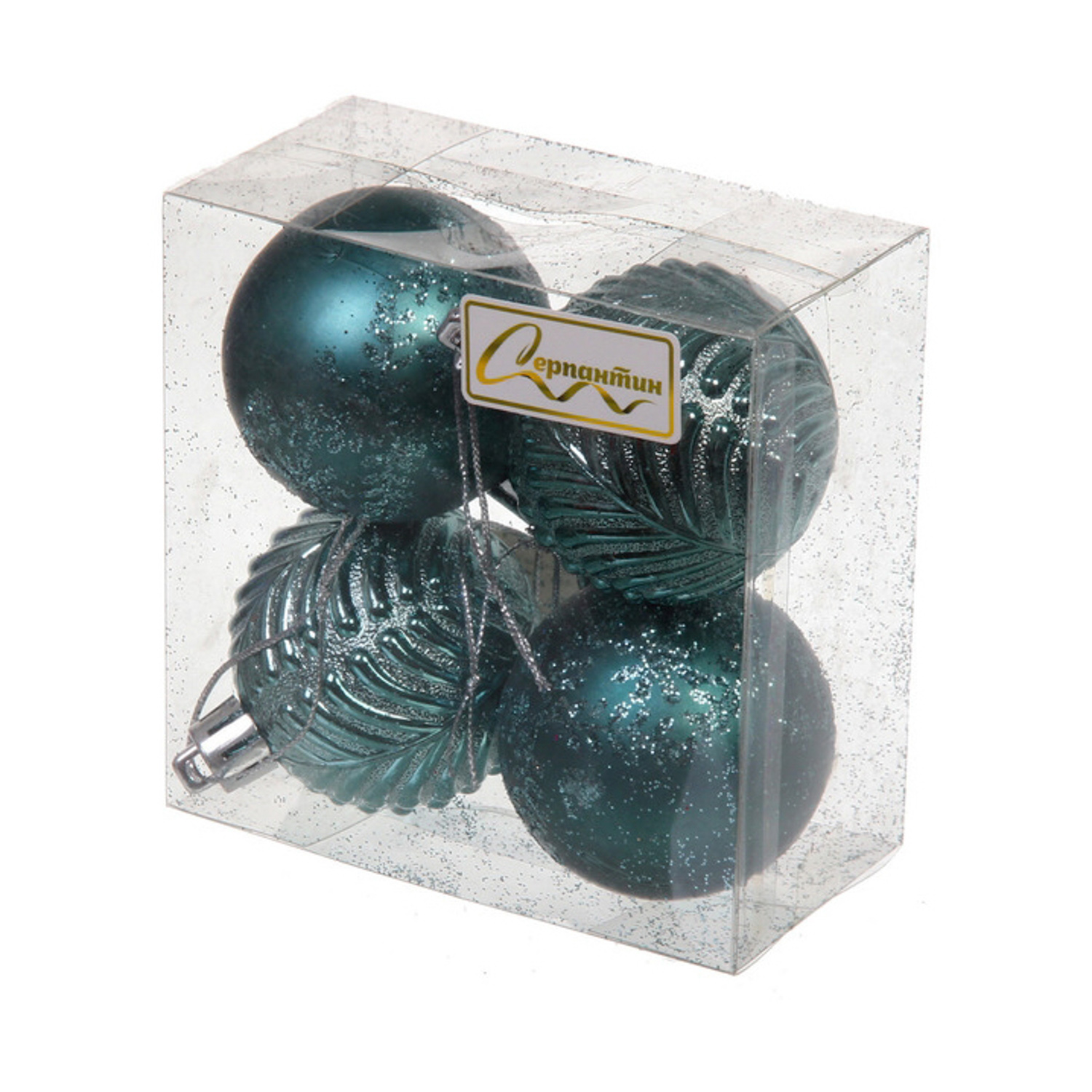 Новогодние шары 5 см (набор 4 шт) "Лесная тайна", темный нефрит
