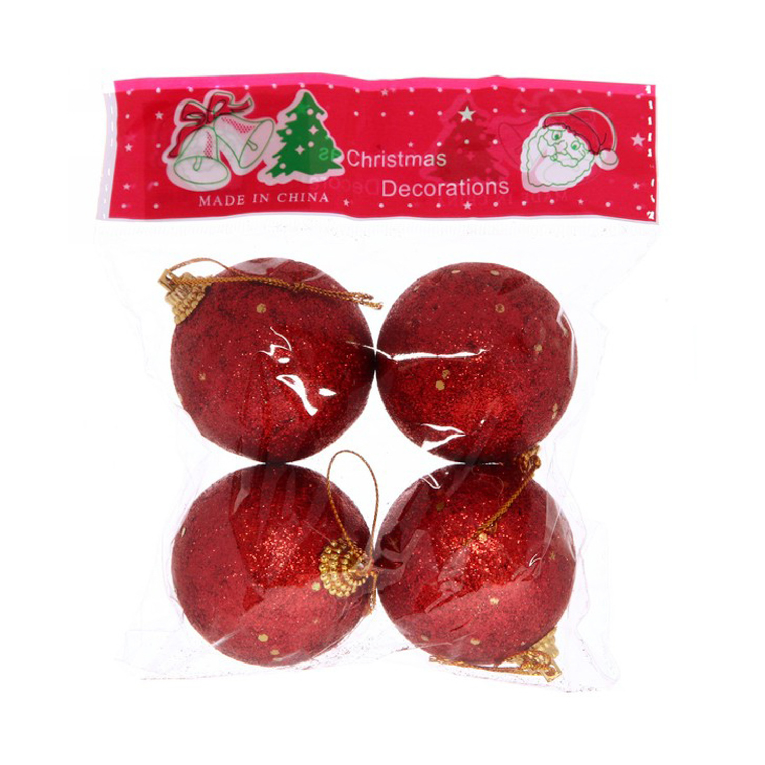 Новогодние шары 5 см "Посыпка из блёсток" набор 4 шт, красный