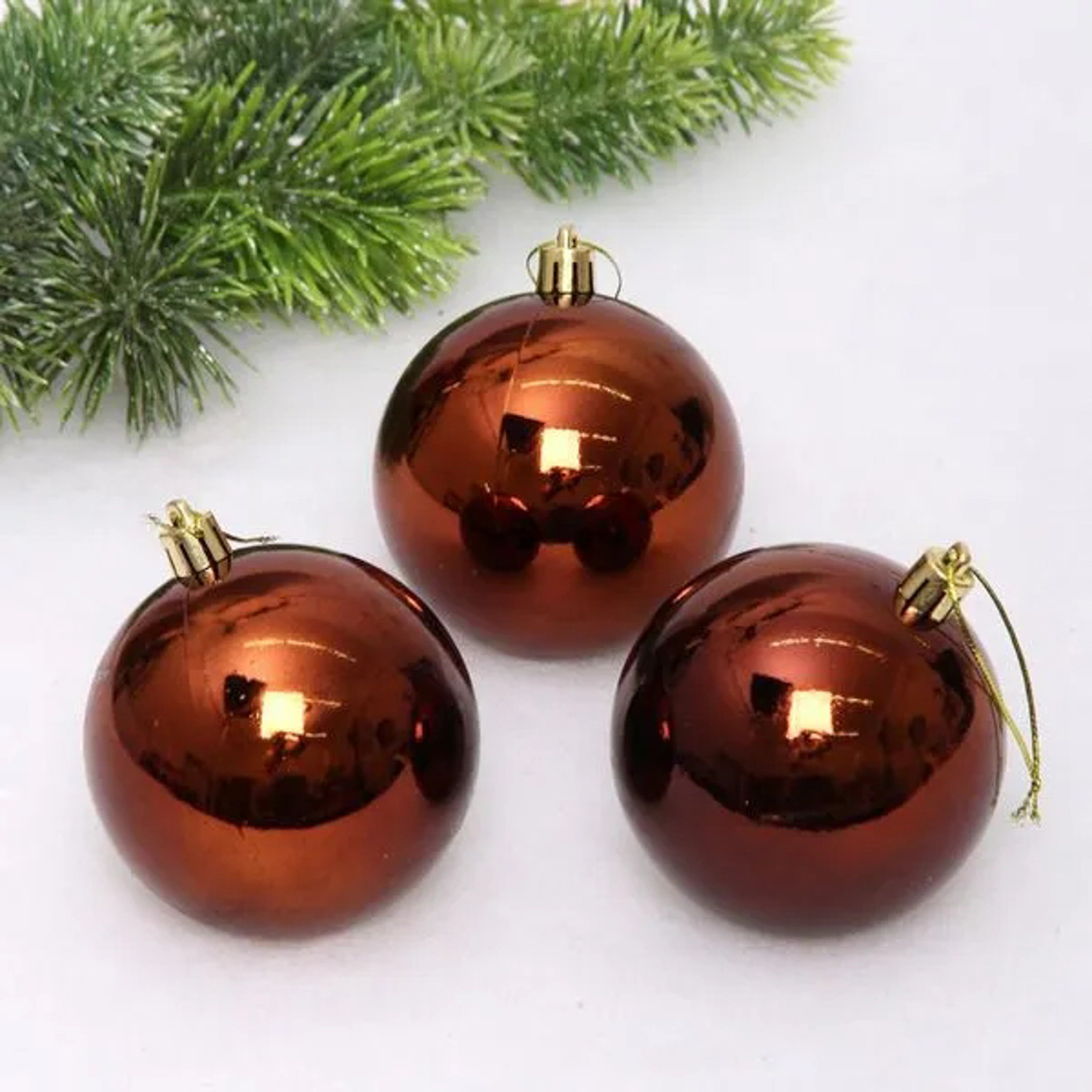 Новогодние шары 8 см (набор 3 шт) "Глянец", шоколад
