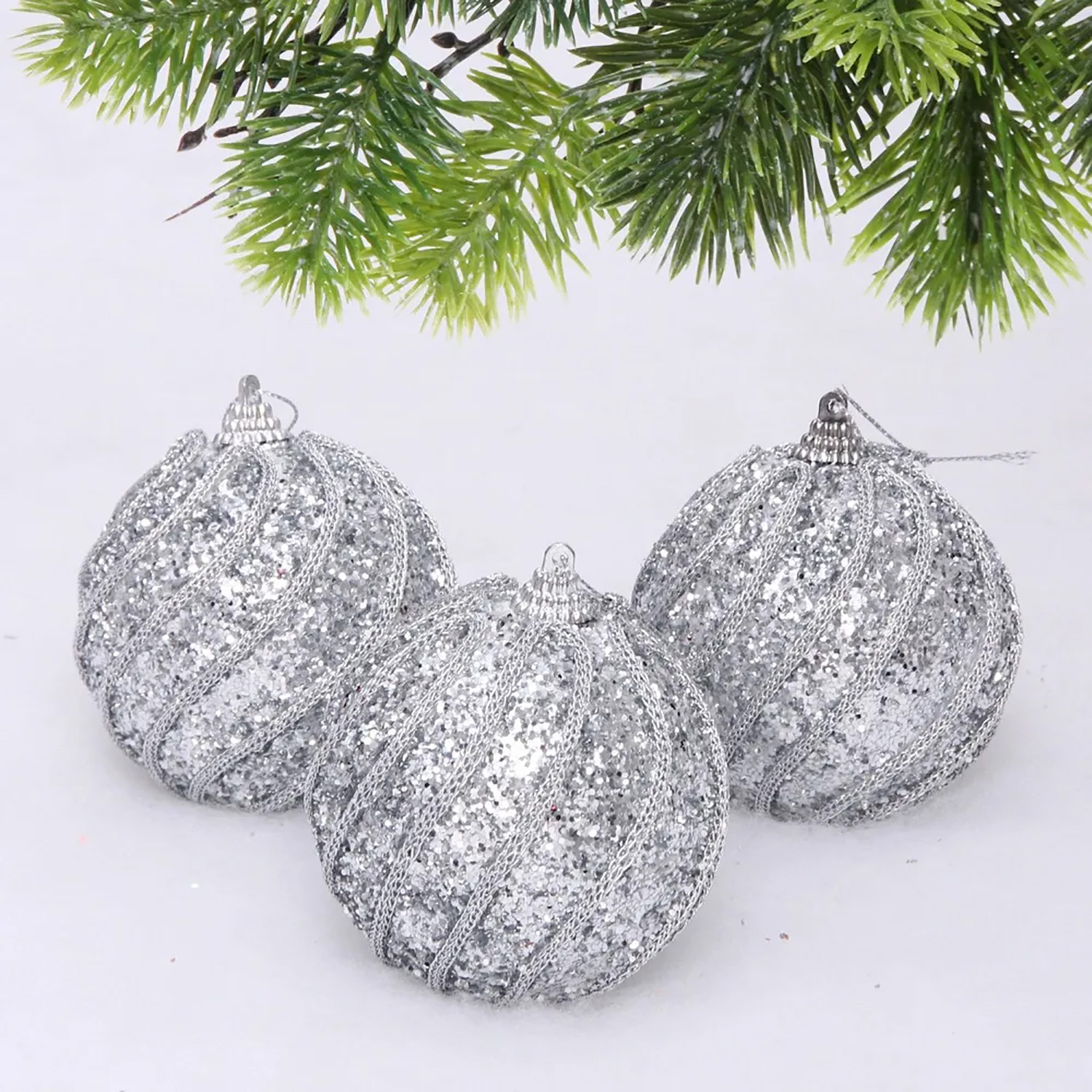 Новогодние шары "GLAME - Блестящий мир" 8 см (набор 3 шт), Серебро