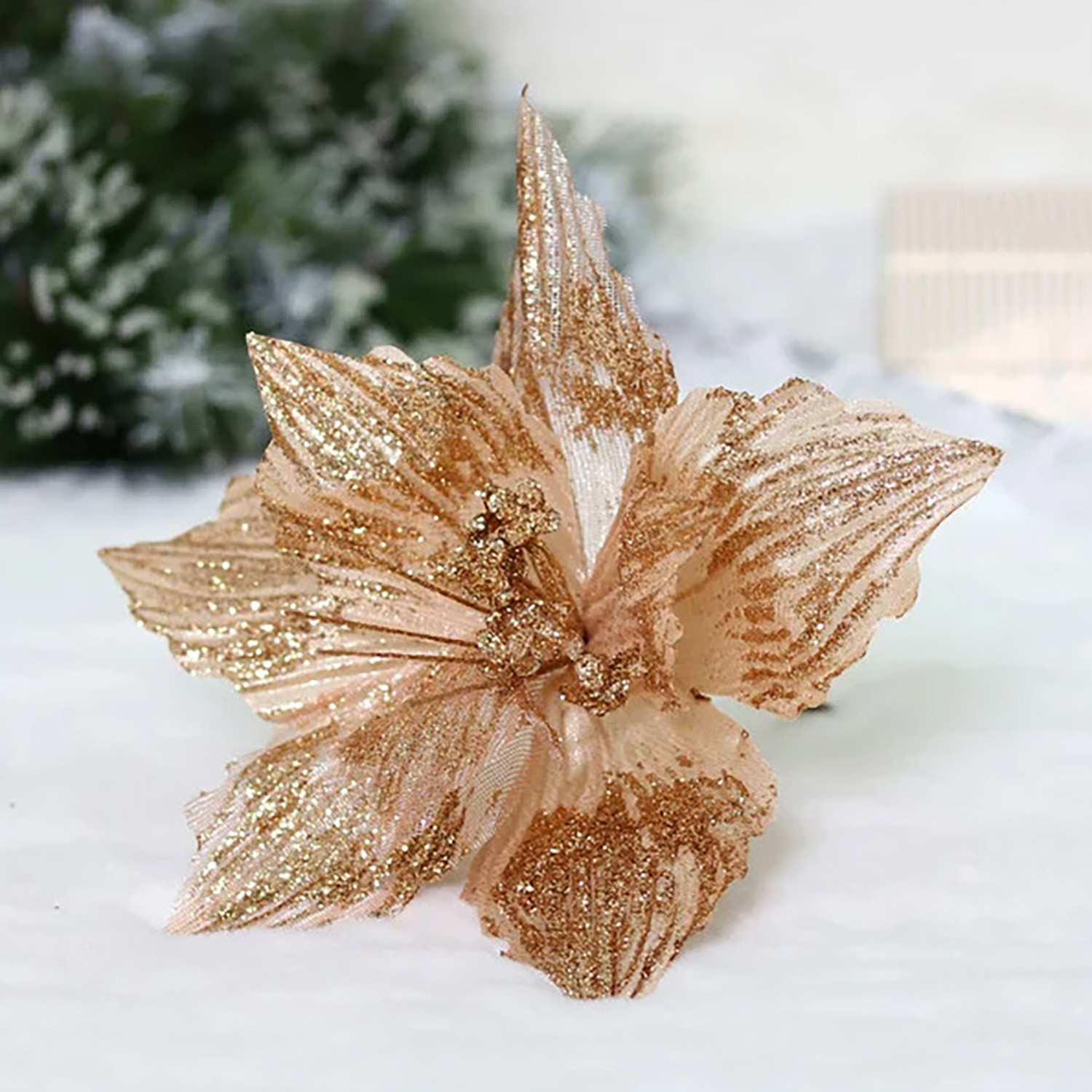 Украшение новогоднее "Пуансеттия - Зимняя нежность" 25 см, Шампань