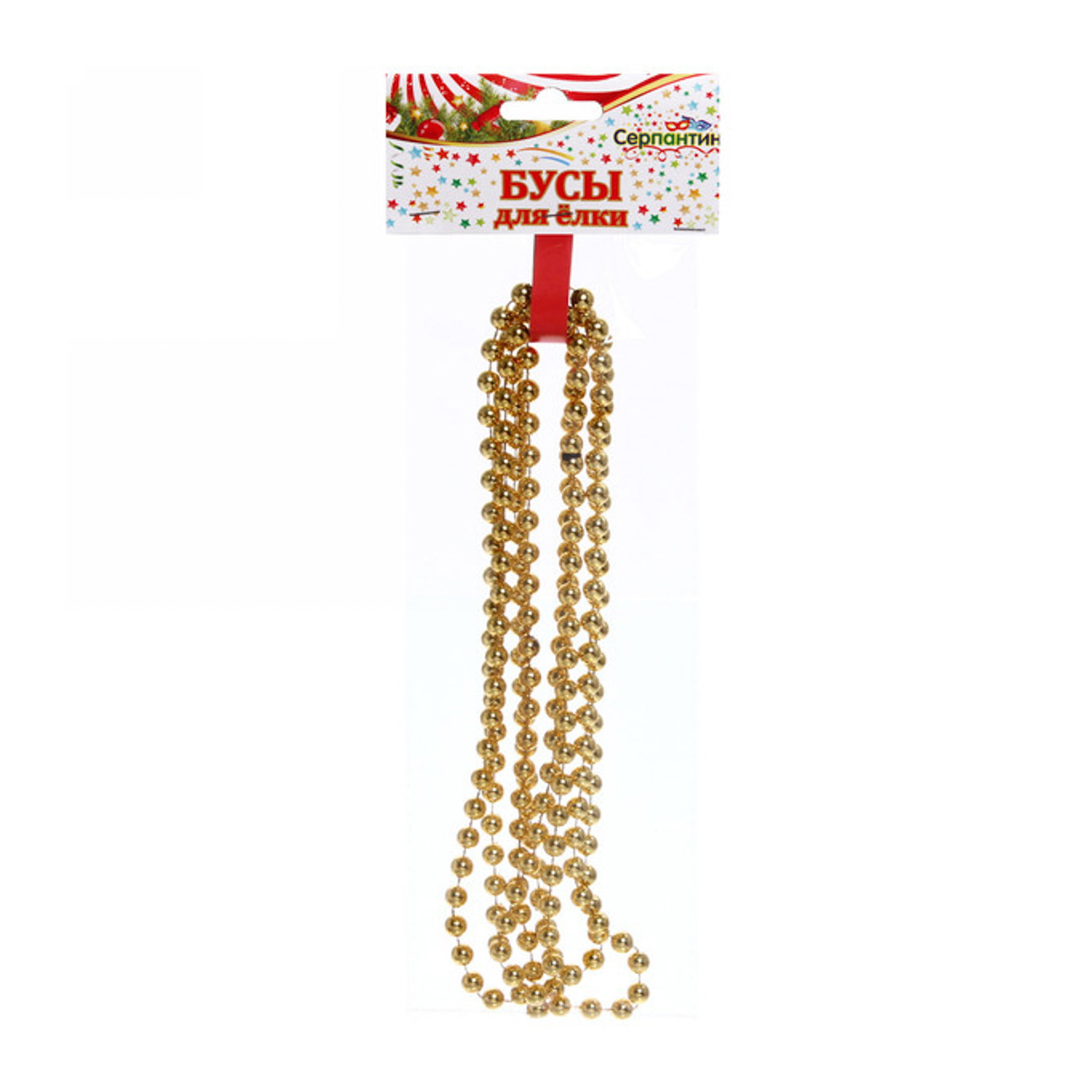Бусы на ёлку золото 2,0 м "Шарик средний" d-8мм
