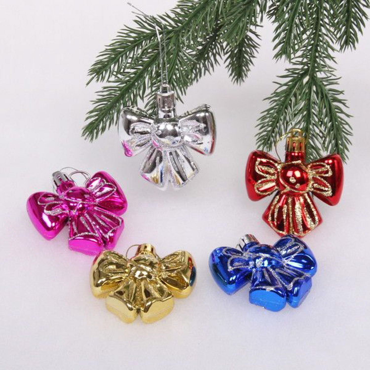 Ёлочные игрушки "Бантик" 6 см (набор 5 шт), микс