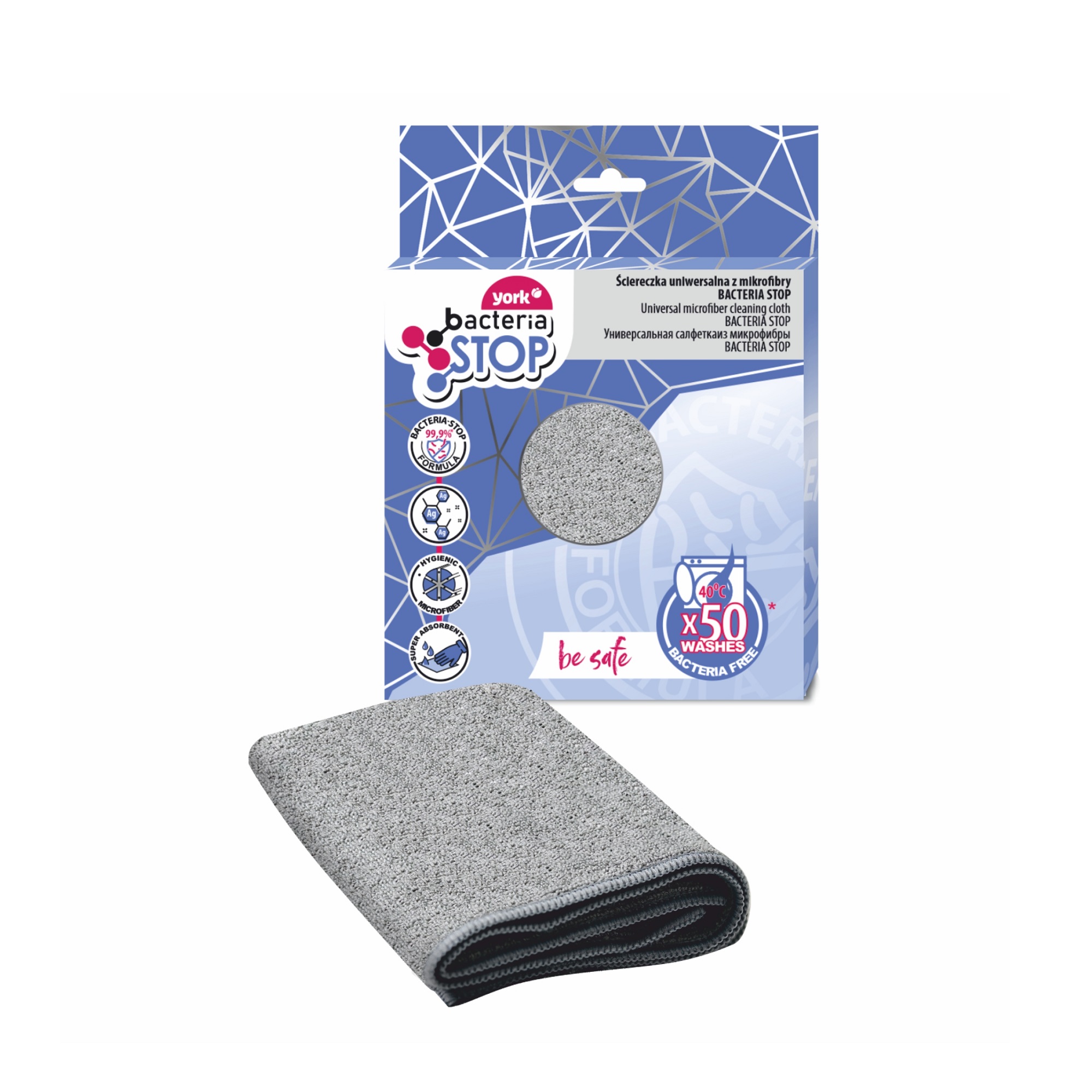 Салфетка для уборки универсальная микрофибра "bacteria STOP" 35х35см 026320 "York" *1/32