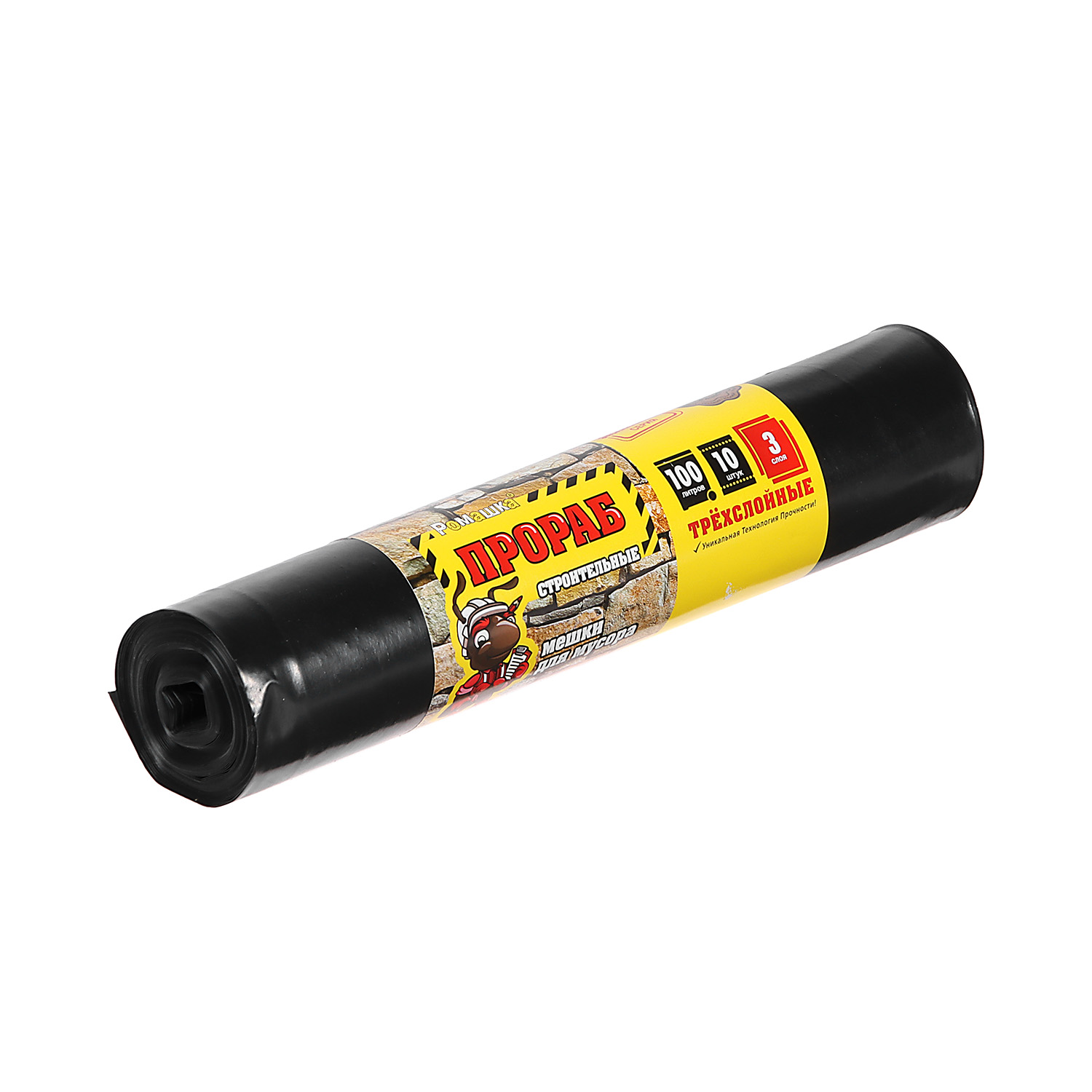 Мешки для мусора 100л*10шт толщ.70мкм Трехслойные "Прораб" ПВД ПБ100/10/10/3с "Ромашка"* 10