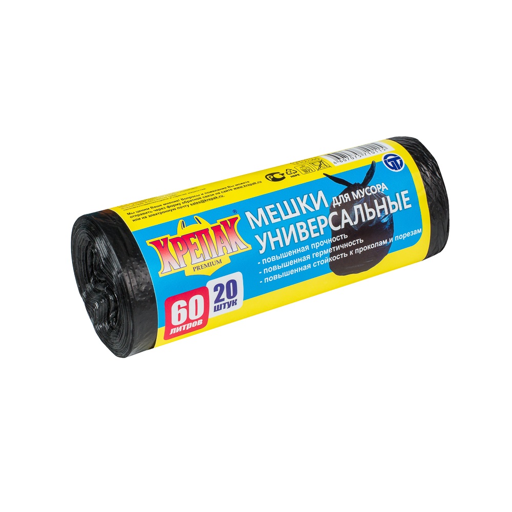 Мешки для мусора 60л*20шт толщ.10мкм "КРЕПАК" *50