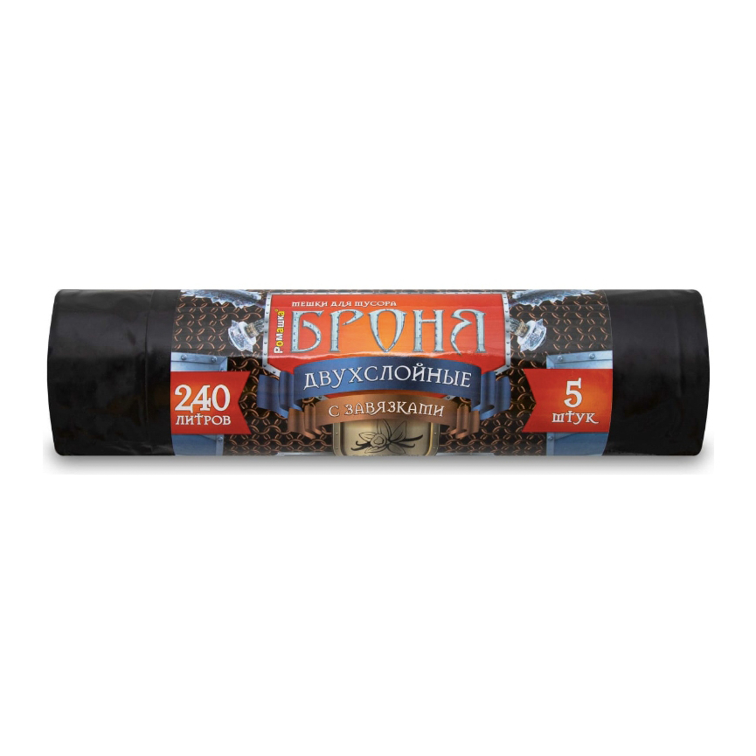 Мешки для мусора с завязками 240л*5шт толщ.55мкм Двухслойные "Броня" ПВД 3ВБ-240/5/9/Ч "Ромашка" *9