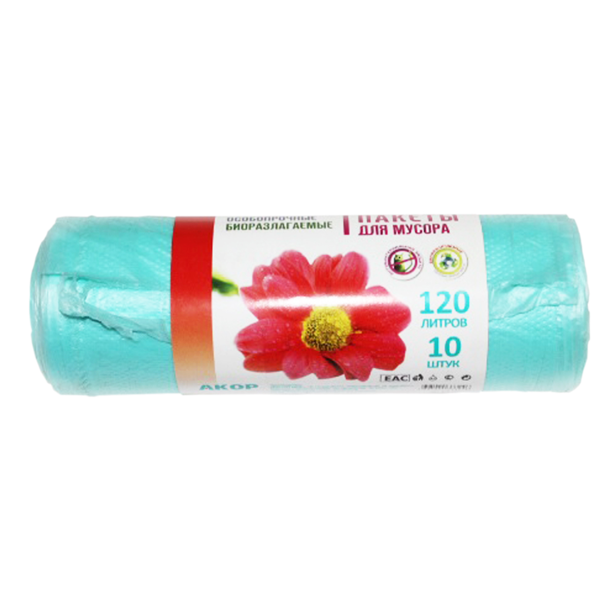 Мешки для мусора 120л*10шт толщ.18мкм Биоразлаг., Особопрочн. "Антибак+Био" арт.205-107 (Акор)