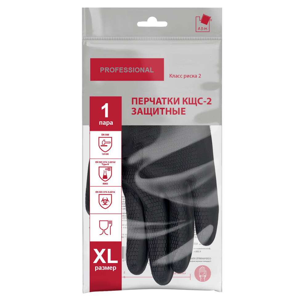 Перчатки латексные Кислото-Щелоче-Стойкие КЩС-2 Черные 1пара р-р "XL" KCS2-31 "А.Д.М." *1/60