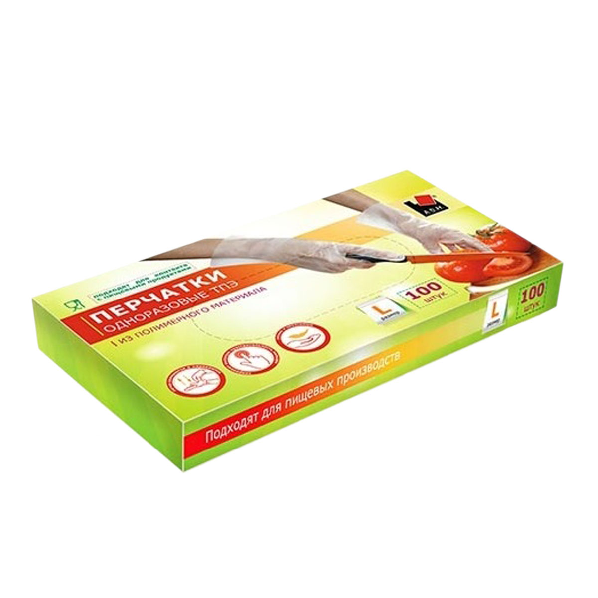Перчатки полимерные ТПЭ (термопл.эластомер) одноразовые L (большой) 100шт TPE001L "А.Д.М." *1/10