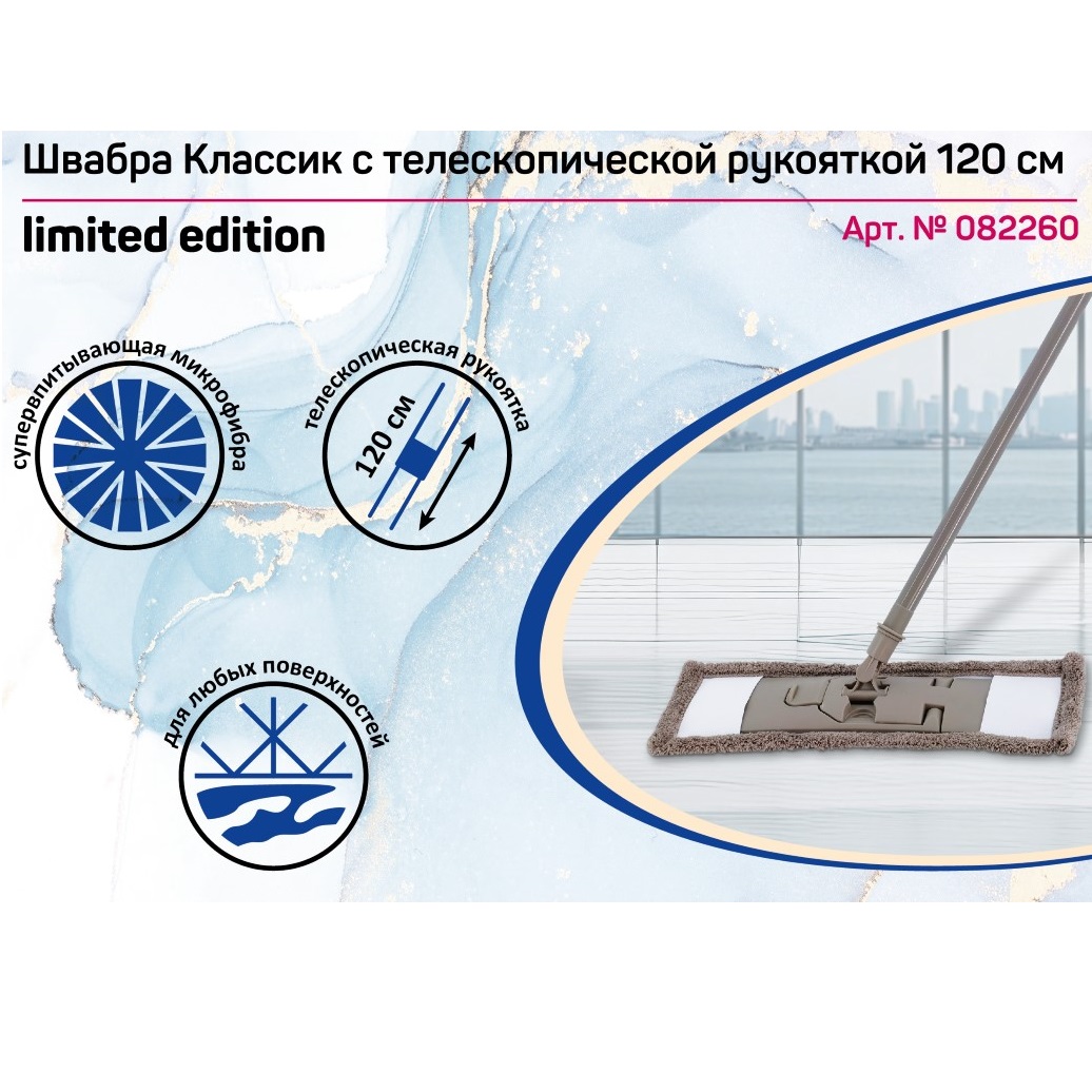 Швабра "флеттер" с насадкой из микрофибры "бархат", телескоп. ручка130см "Классик"082260 "York"*1/12