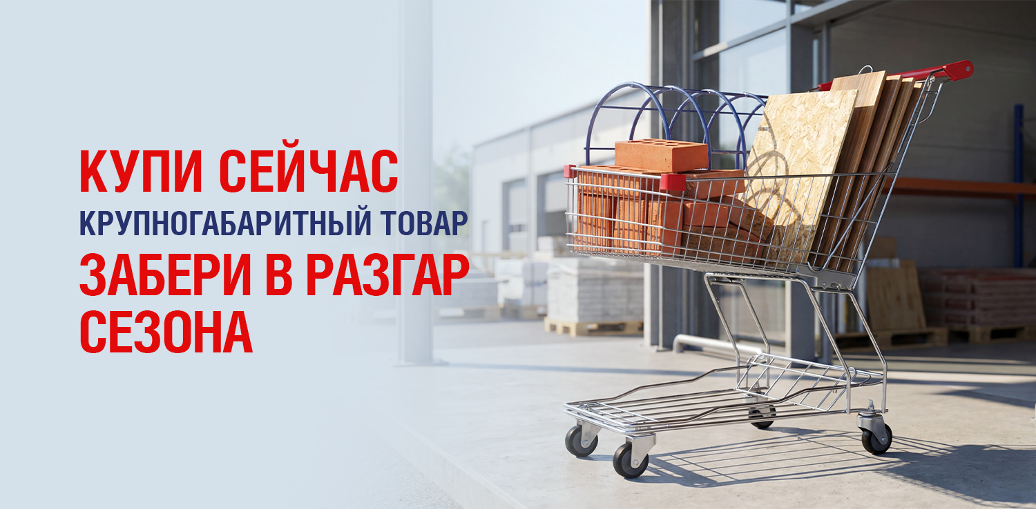 Покупайте листовые материалы, сухие смеси, дерево, кирпич, строительные блоки, тротуарную плитку, сыпучие товары, утеплители, укрывные материалы, поликарбонат, каркасы теплиц, напольные покрытия, керамическую плитку, двери, панели ПВХ или МДФ и другие крупногабаритные товары заранее — а забрать сможете позже, когда начнётся активный сезон работ. Мы бесплатно сохраним вашу покупку до 120 дней* — чтобы вы могли подготовиться без спешки, лишних хлопот и переплат. Отличный способ зафиксировать цену сегодня и спокойно планировать стройку или ремонт на будущее.