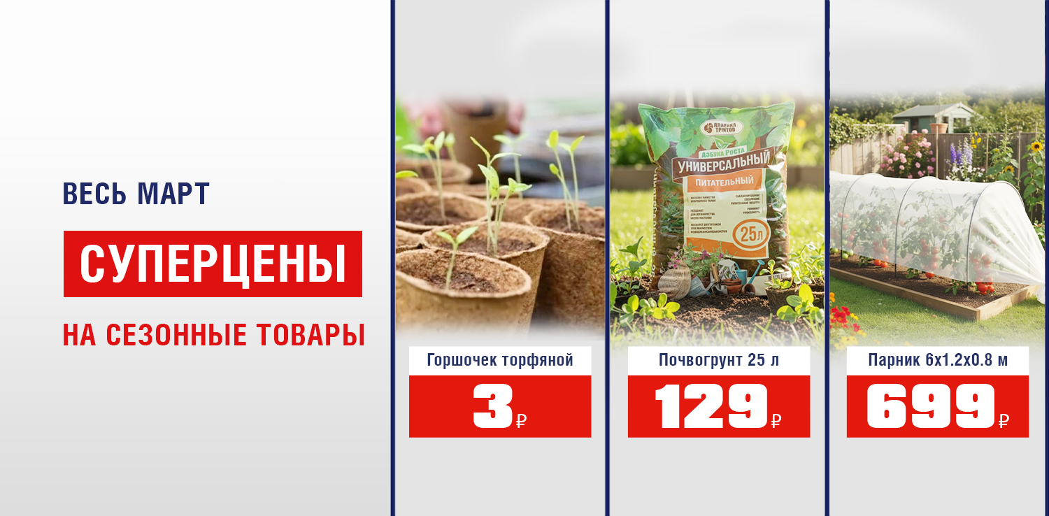 Только до 31 марта в ДомоСтрой суперцены на сезонные товары для дачи и сада! Успейте заказать на сайте или приобрести в магазине.